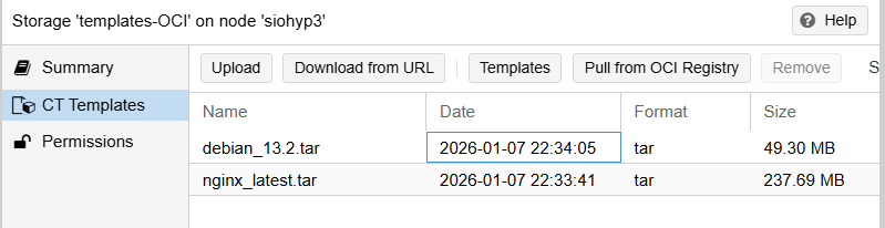 Création/configuration d'un stockage dans Proxmox pour importer les images OCI
